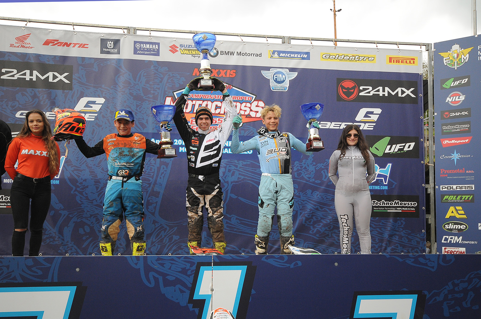 Nella 65 pari e patta tra il francese Adrien Danion (Husqvarna) e lo spagnolo Joel Canadas (KTM). A prevalere è quest’ultimo, per effetto della discriminante del miglior piazzamento nella seconda manche. In gara-1 l’iberico deve arrendersi per pochi metri a Danion, che guida con grande coraggio sul fango, ma in gara-2 approfitta della cattiva partenza del rivale e va a vincere, mentre il francese è costretto a perdere secondi preziosi in rimonta.