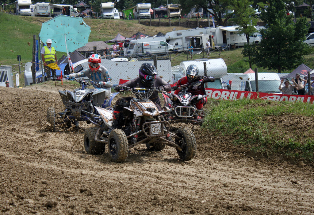 Nel quadcross Qx1 Patrick Turrini (Yamaha – Enduro Sanremo) ha un vantaggio di oltre 40 punti su Simone Mastronardi (Yamaha – Piccirilli). Un margine che permette al pilota ligure di dormire sonni tranquilli, ma la sfida con Mastronardi è stata spettacolare per tutta la stagione e sicuramente nessuno dei due vorrà chiudere il campionato con una sconfitta nella gara finale. Al terzo posto, già sicuro del podio in campionato, c’è Niccolò Roagna (Yamaha – Team Mgm).