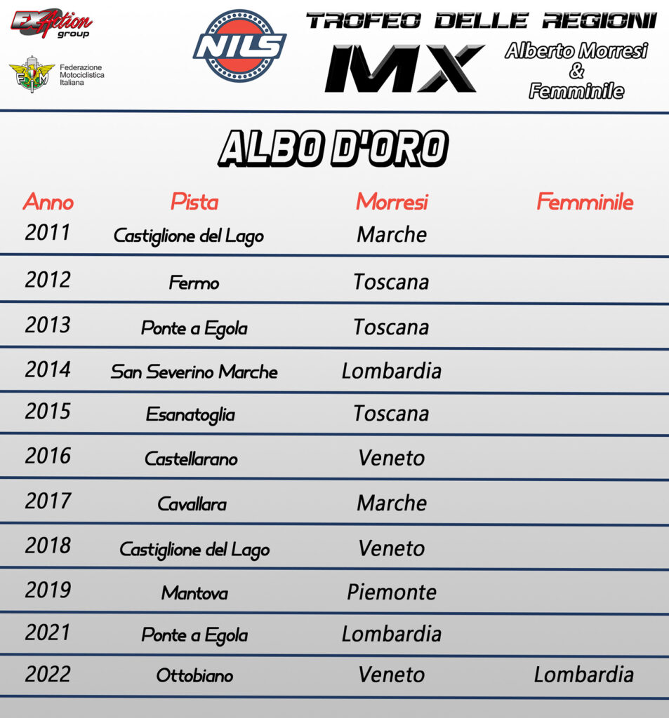 | REGIONE | # | MX1 | MX2 | 125 | VETERAN |