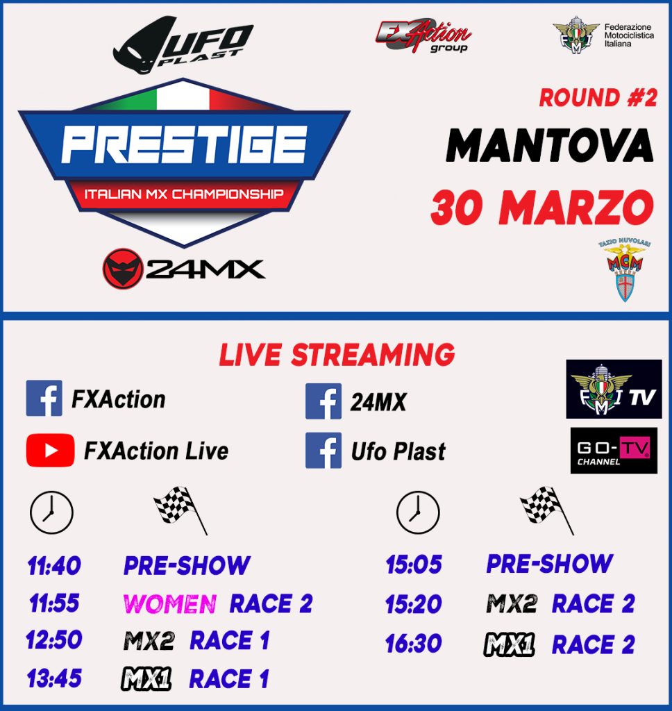 Mantova – Tutto pronto al circuito internazionale di Mantova per la seconda prova del campionato italiano motocross 24MX – Ufo Plast Pro series delle classi Mx1, Mx2 e Femminile. Da domani i piloti scenderanno in pista per le qualifiche e le manche in un lungo weekend d’azione e spettacolo.